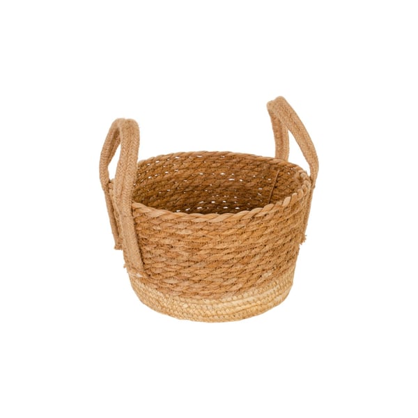CESTO / CACHEPÔ PALHA 15X24 CM BASE BEGE COM ALÇAS MULTIUSO