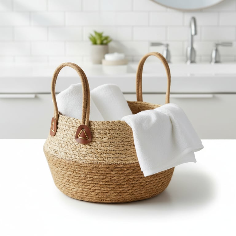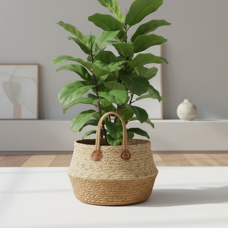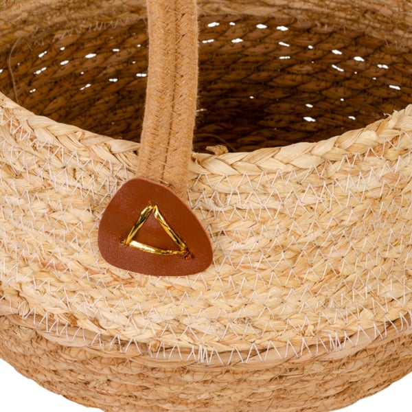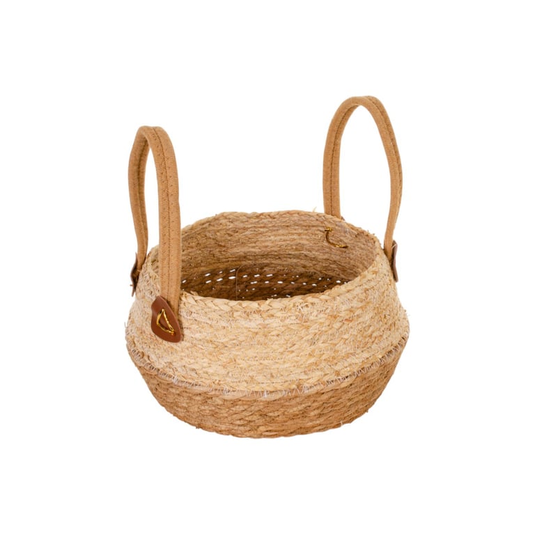 CESTO / CACHEPÔ PALHA 16X28 CM BORDA BEGE COM ALÇAS MULTIUSO