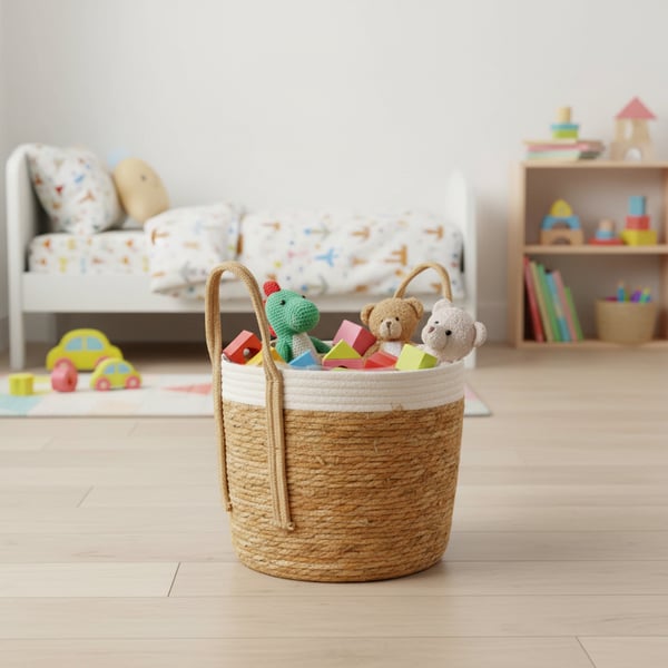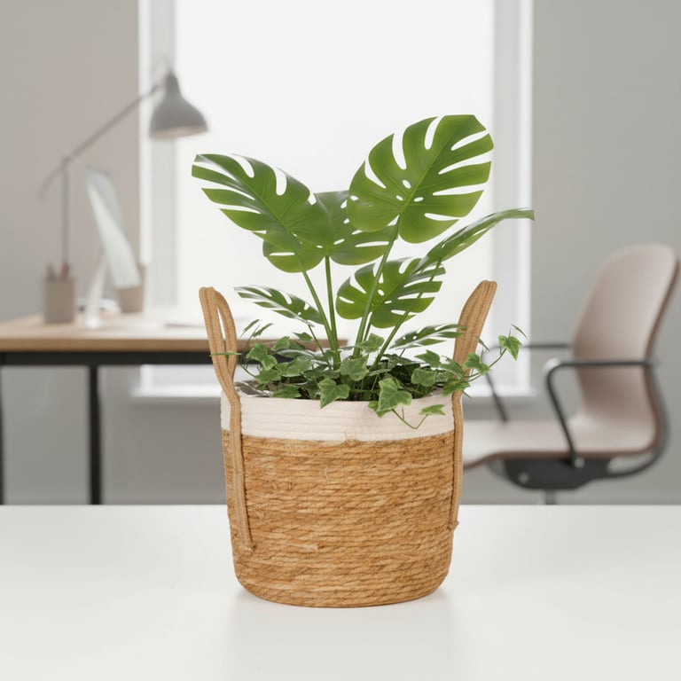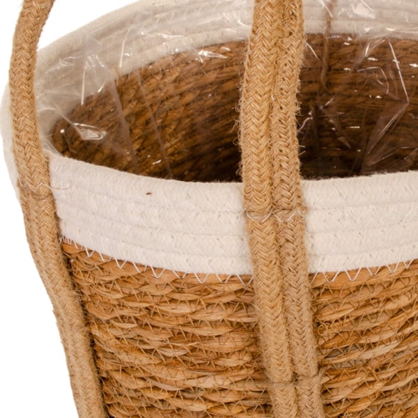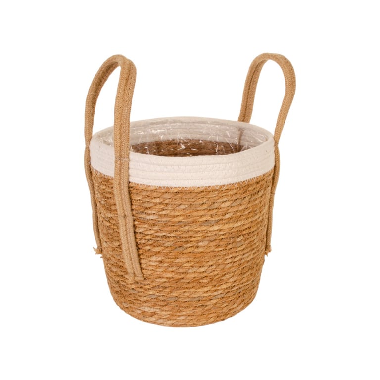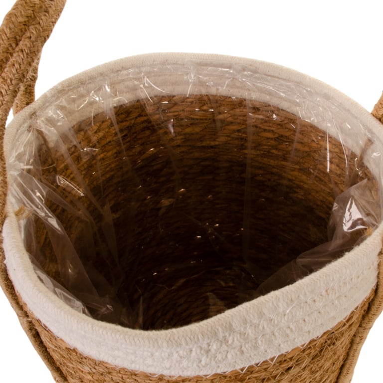 CESTO / CACHEPÔ PALHA 26X21 CM BORDA TECIDO COM ALÇAS MULTIUSO