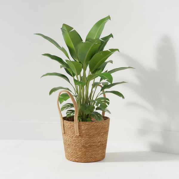 CESTO / CACHEPÔ PALHA 27X35 CM TRANÇADO COM ALÇAS MULTIUSO