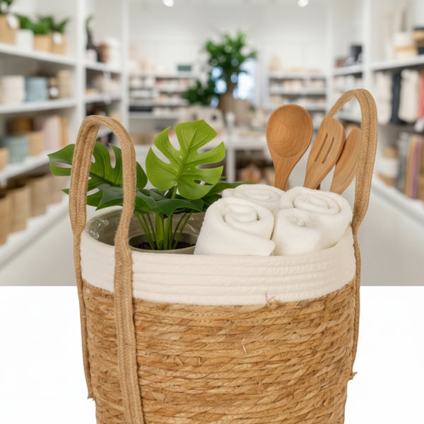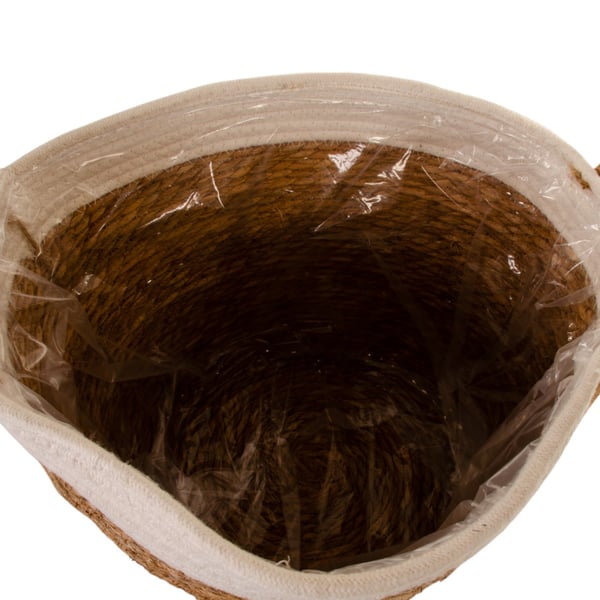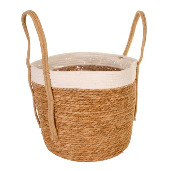 CESTO / CACHEPÔ PALHA 30X35 CM BORDA TECIDO COM ALÇAS MULTIUSO
