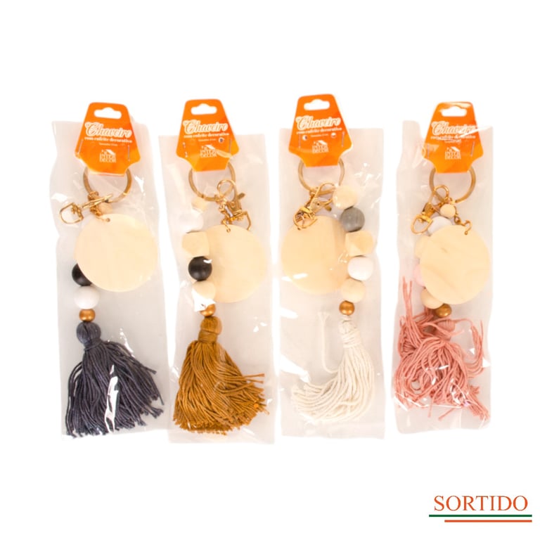 CHAVEIRO AMADEIRADO 16 CM COM FRANJAS