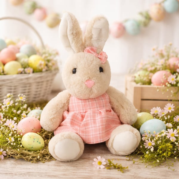 COELHO / COELHA PELÚCIA 28 CM ROUPA XADREZ