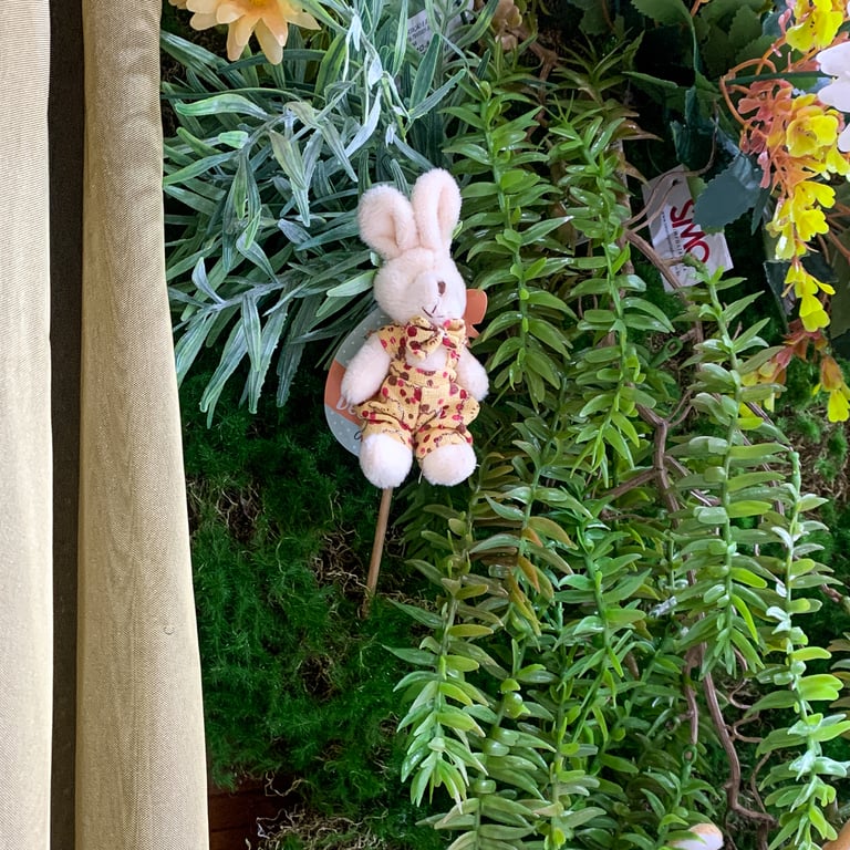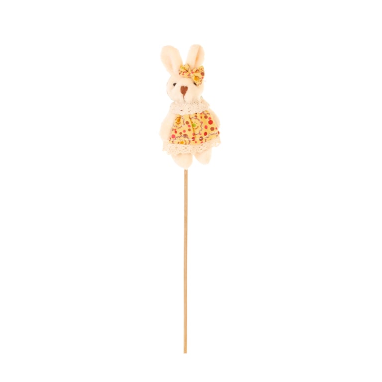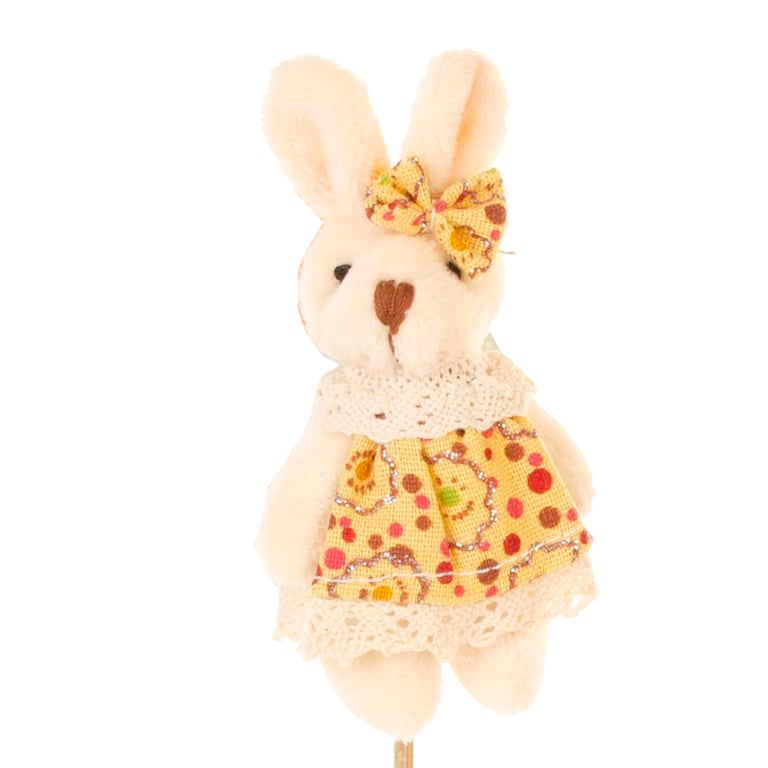 COELHO / COELHA PELÚCIA 30 CM ROUPA AMARELA NO PALITO