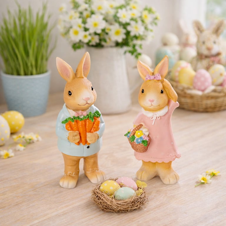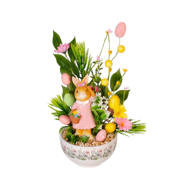 COELHO / COELHA RESINA 14X5X5 CM EM PÉ CESTO COM CENOURAS / FLORES