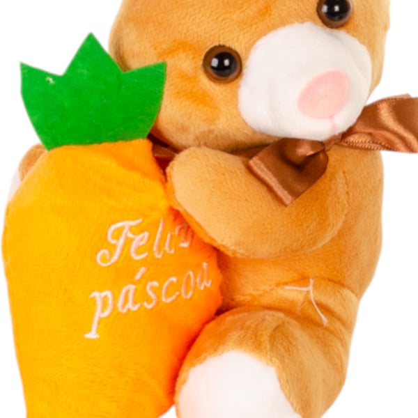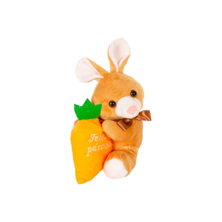 COELHO PELÚCIA 22 CM COM CENOURA FELIZ PÁSCOA