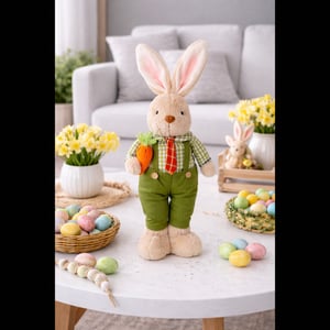 COELHO PELÚCIA 25 CM COM BOLSA ROSA E VERDE