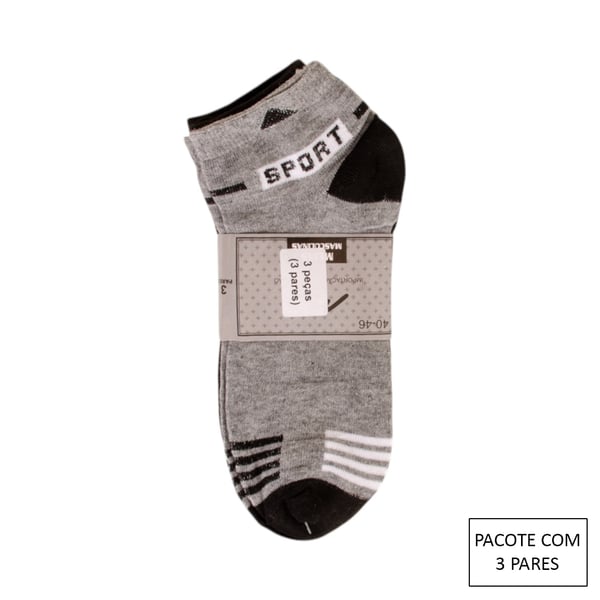 CONJUNTO 3 PARES DE MEIAS ADULTA 24X9 CM CURTA SPORT