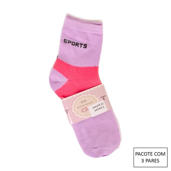 CONJUNTO 3 PARES DE MEIAS ADULTA 27X9 CM SPORTS