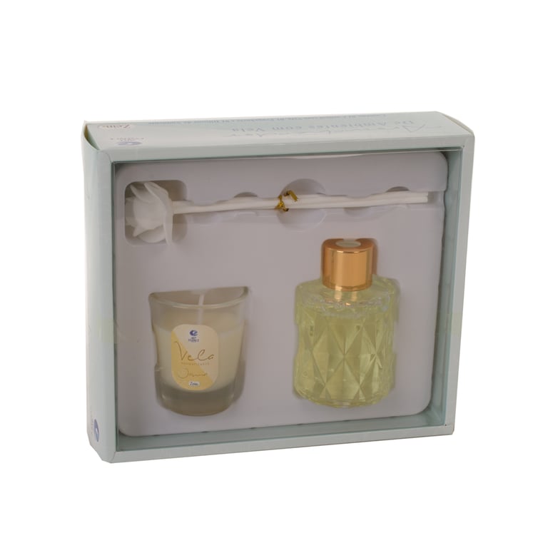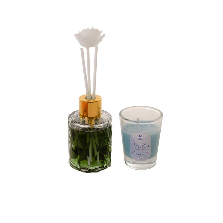 CONJUNTO AROMATIZADOR DE AMBIENTES E VELA 15,5X17X5 CM COM VARETAS