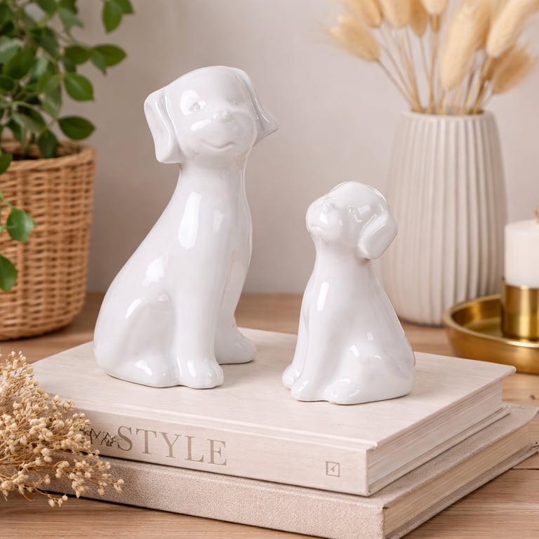 CONJUNTO CACHORRO CERÂMICA 12,5X9X6 CM 2 PEÇAS