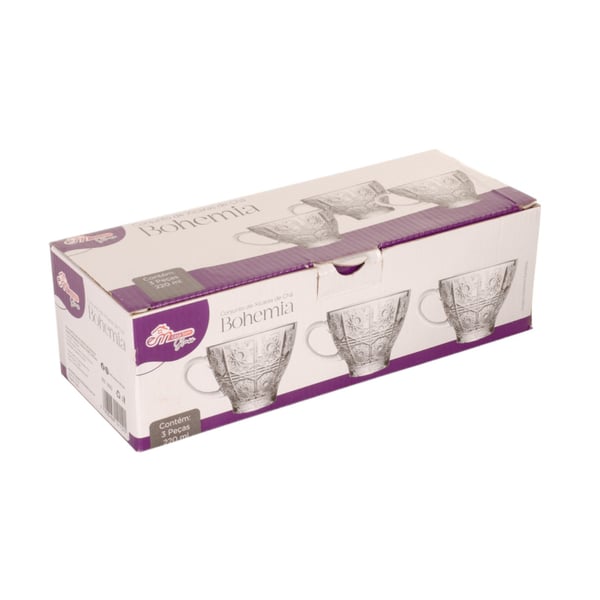 CONJUNTO CANECA / XÍCARA VIDRO 3 PEÇAS 220 ML RELEVOS