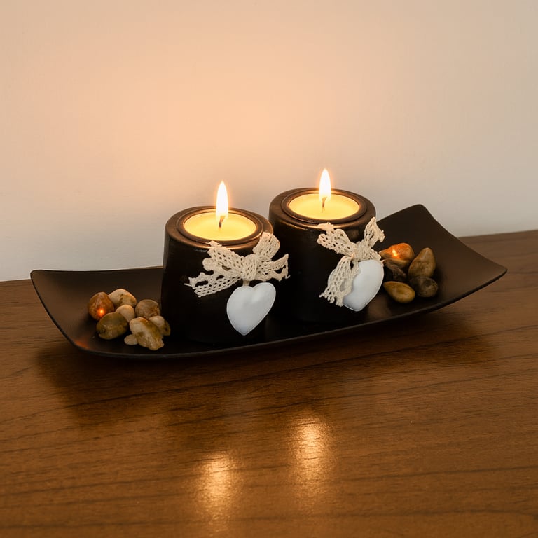 Observações CONTÉM: 1 BANDEJA, 2 CASTIÇAIS E PEDRAS DECORATIVAS