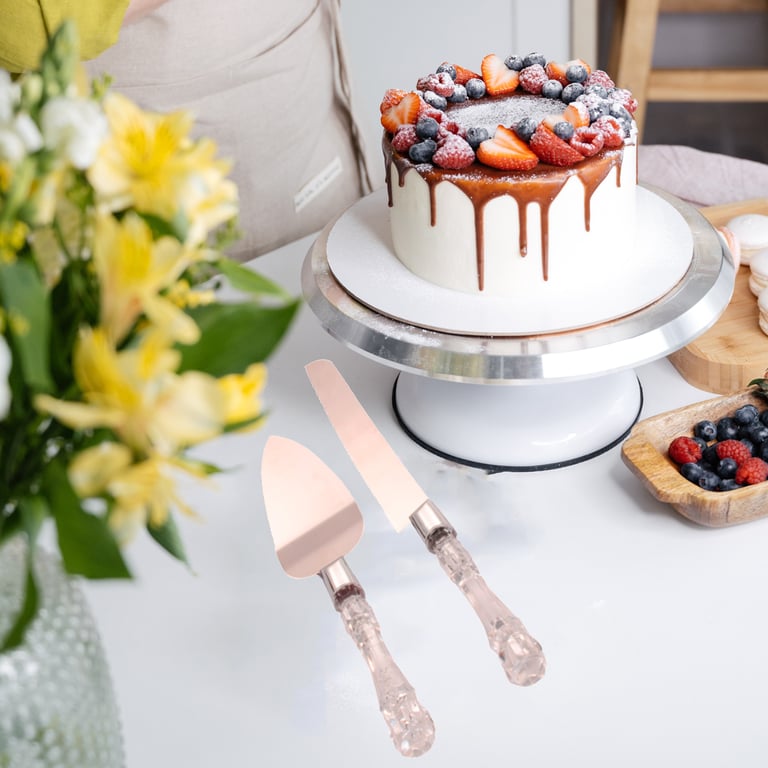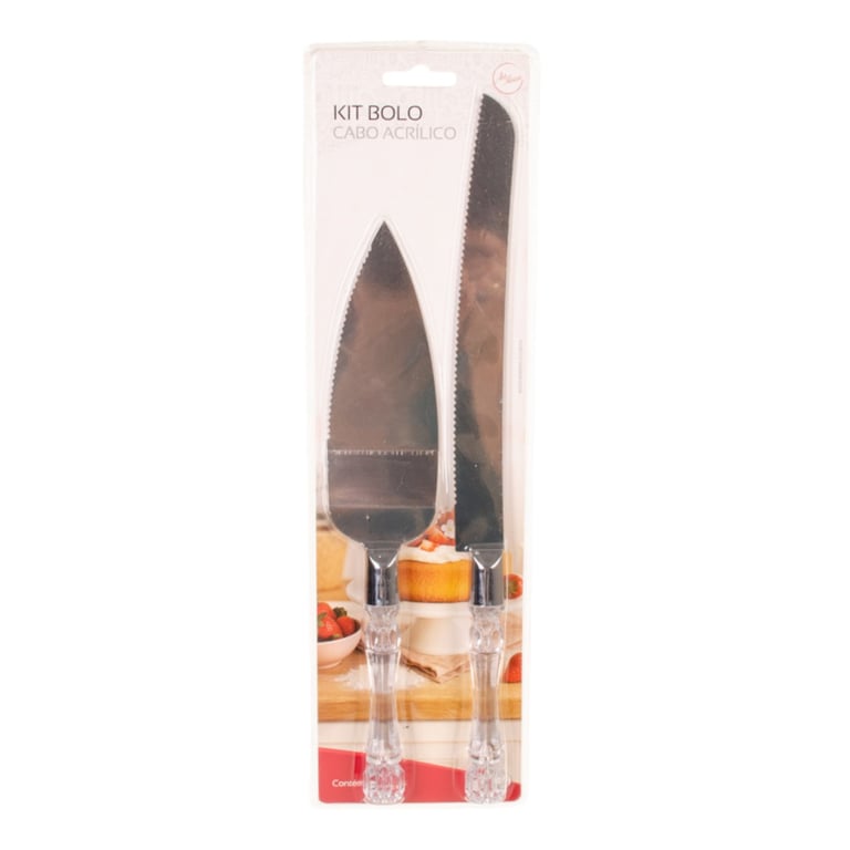 CONJUNTO FACAS PARA BOLO INOX 2 PEÇAS 32X10 CM CABO ACRÍLICO