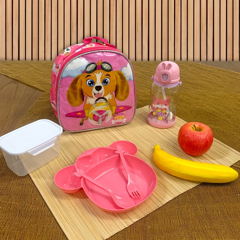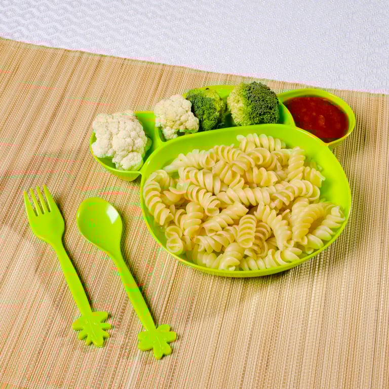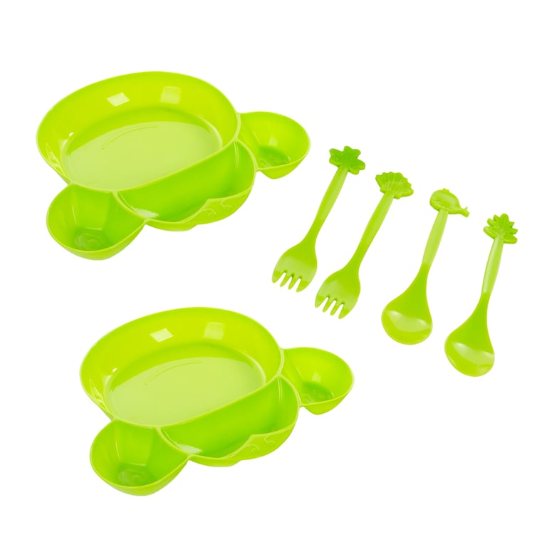 CONJUNTO REFEIÇÃO PLÁSTICO INFANTIL 20X20 CM 6 PEÇAS PRATO E TALHERES