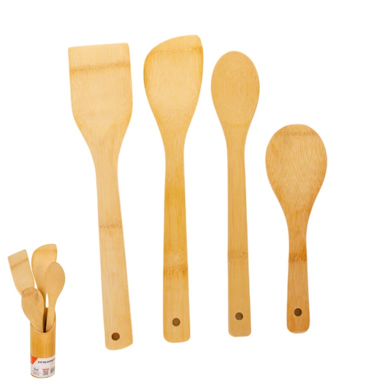 CONJUNTO UTENSÍLIOS COZINHA 5 PEÇAS COM SUPORTE BAMBU