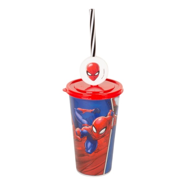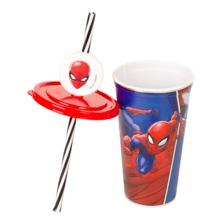 COPO PLÁSTICO 500 ML COM CANUDO HOMEM ARANHA METALIZADO