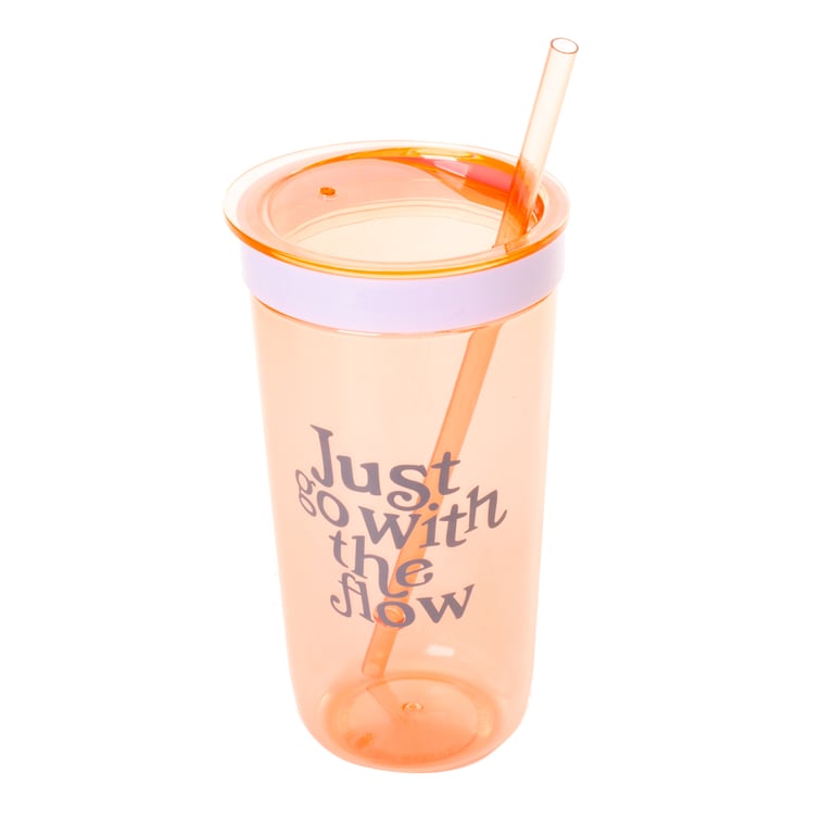 COPO PLÁSTICO 620 ML COM CANUDO LARANJA
