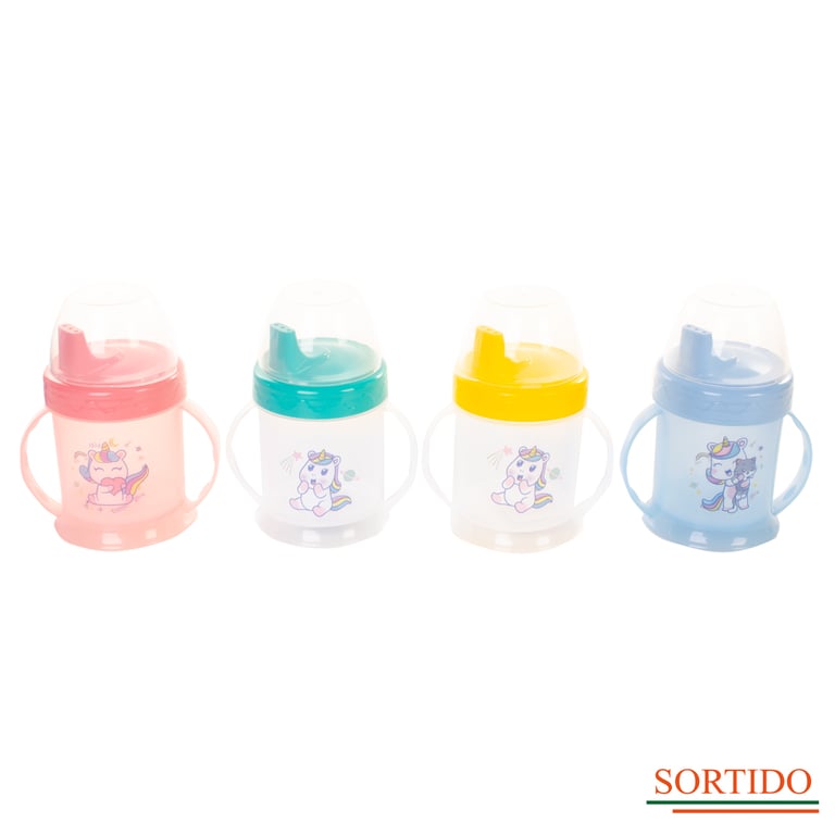 COPO PLÁSTICO INFANTIL 220 ML UNICÓRNIO COM BICO E ALÇA