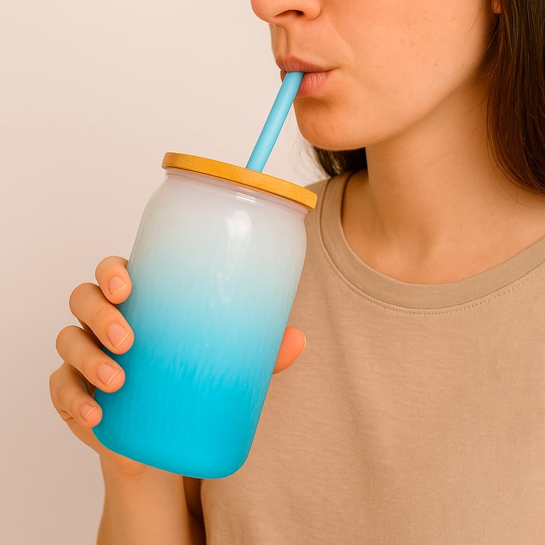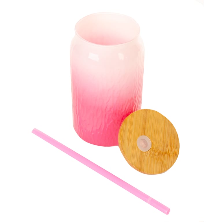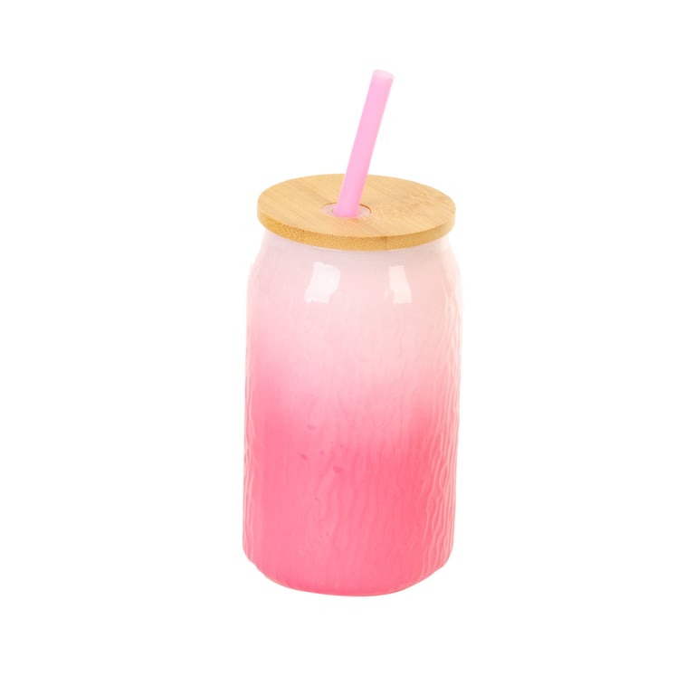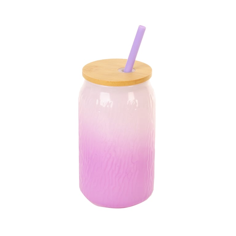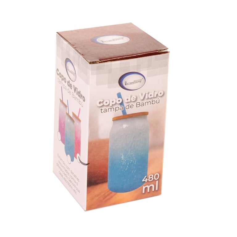 COPO VIDRO 480 ML TAMPA BAMBU COM CANUDO