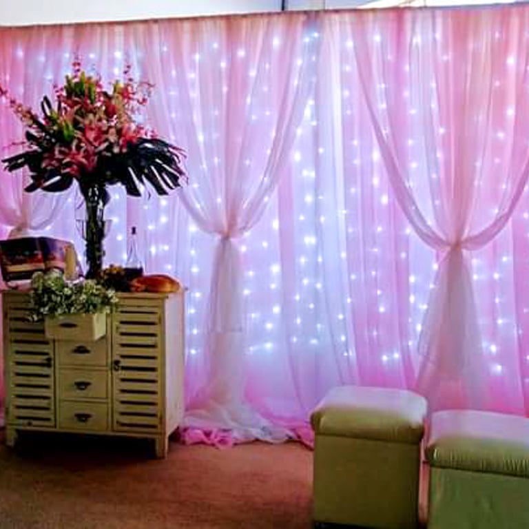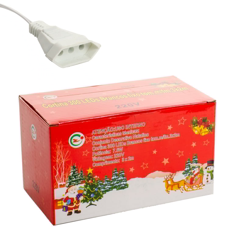 CORTINA / CASCATA 300 LEDS 2X3 M BRANCO FRIO MACHO / FÊMEA FIXA FIO BRANCO 220V