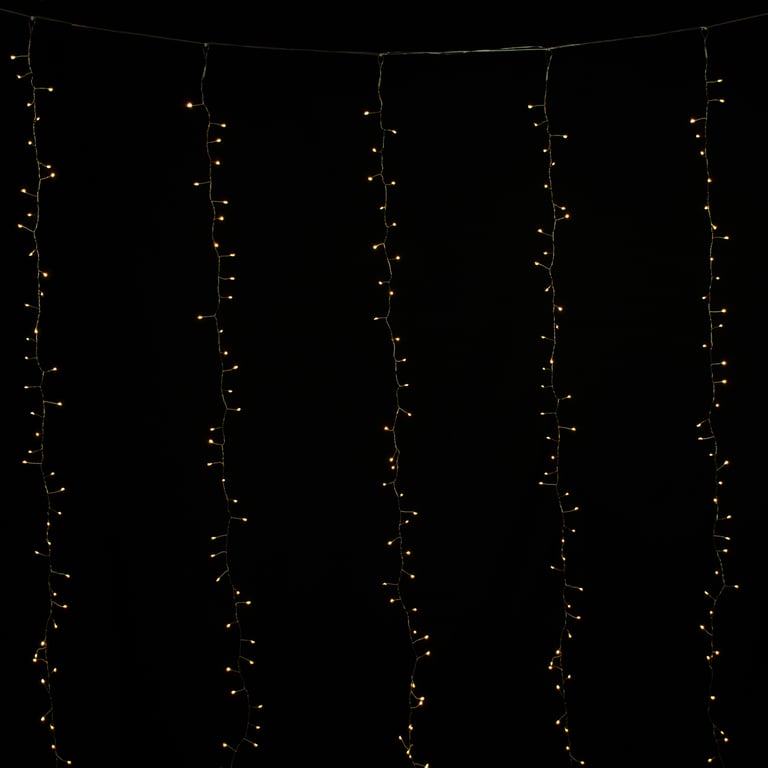 CORTINA / CASCATA 900 LEDS 3X3 M BRANCO QUENTE FIO DE FADA 10 FUNÇÕES FIO METAL BIVOLT USO EXTERNO