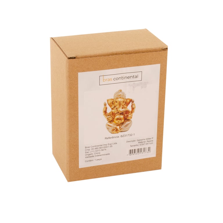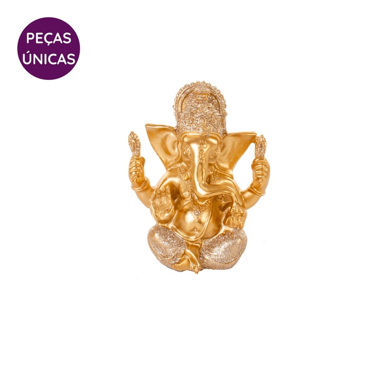 ELEFANTE GANESHA RESINA 11X9,5X7,5 CM DOURADO GLITTER