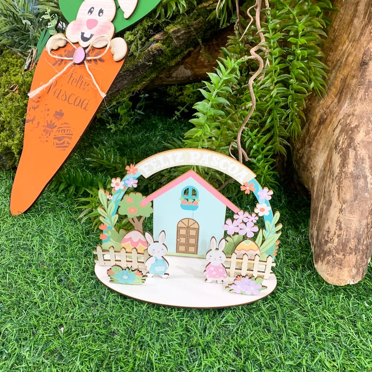 ENFEITE CASA VILA DO COELHO 12,5X18X8,5 CM PARA MONTAR MDF