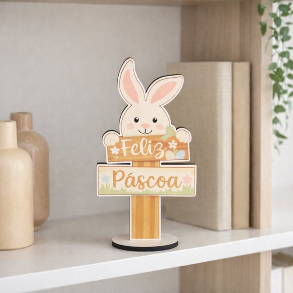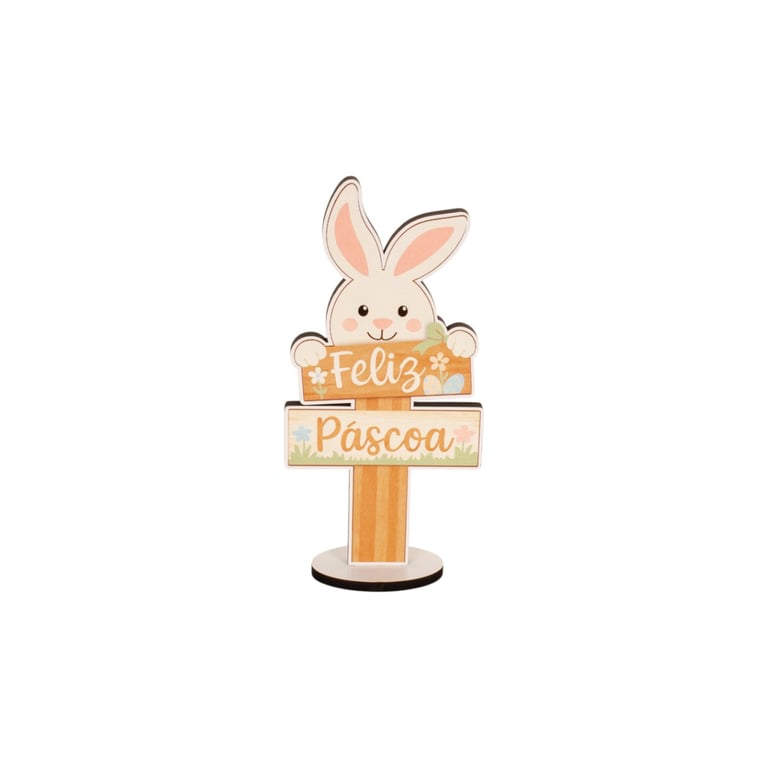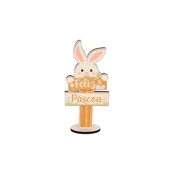 ENFEITE COELHO MADEIRA 20X10 CM FELIZ PÁSCOA