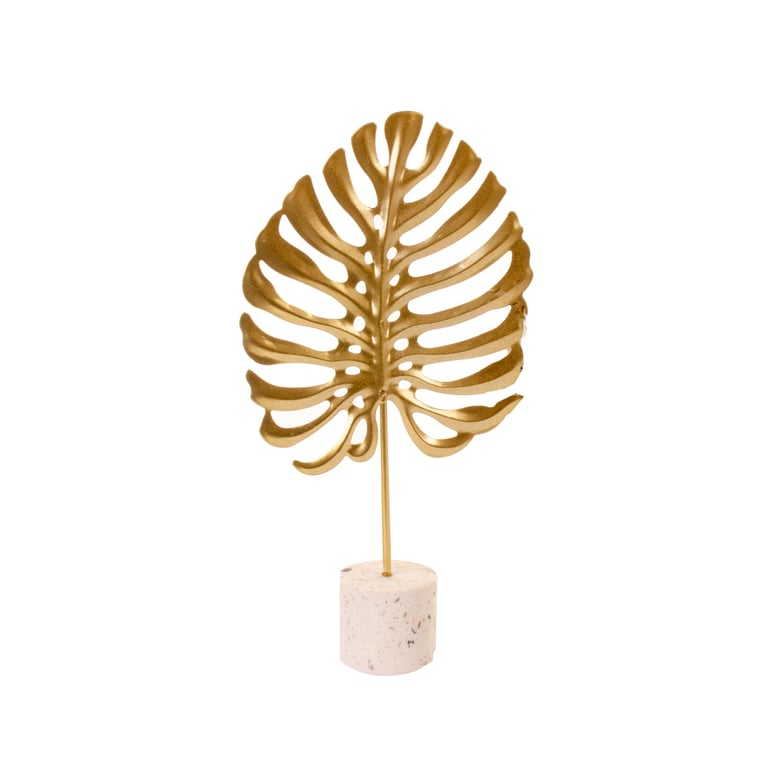 ENFEITE DECORATIVO 24,5X12,5X4,5 CM FOLHA COSTELA METAL E GRANITO