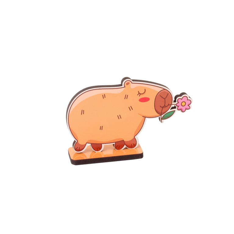 ENFEITE MADEIRA 8X13 CM CAPIVARA COM FLOR