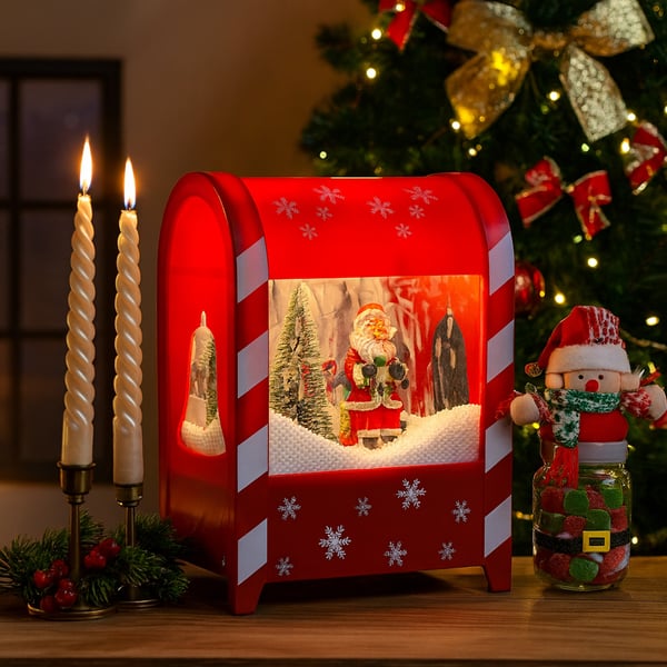 ENFEITE NATAL 19X13,5X9,5 CM CAIXA POSTAL COM SOM LUZ E MOVIMENTO PAPAI NOEL