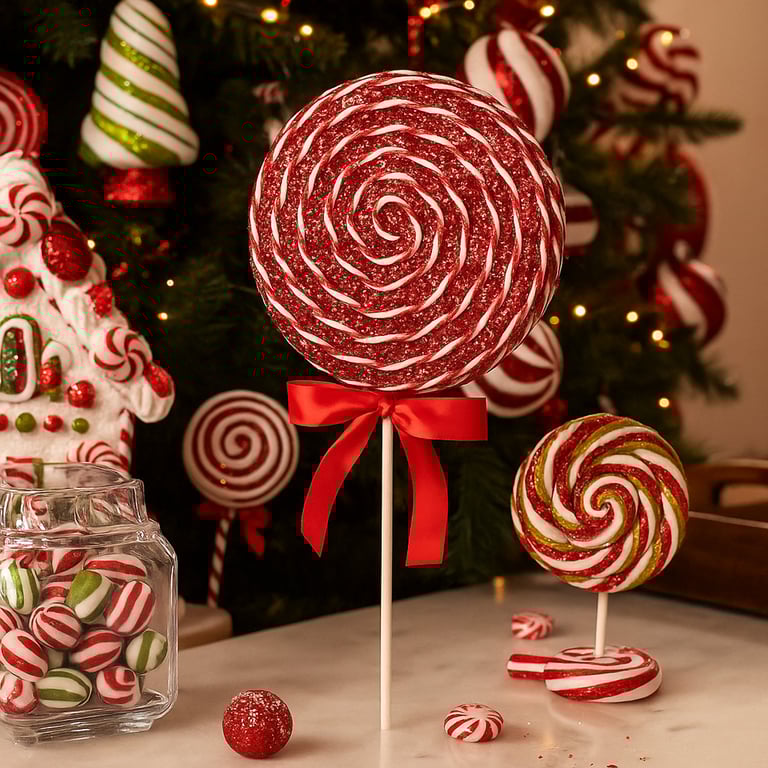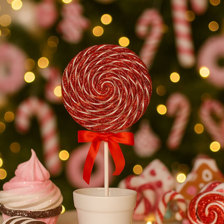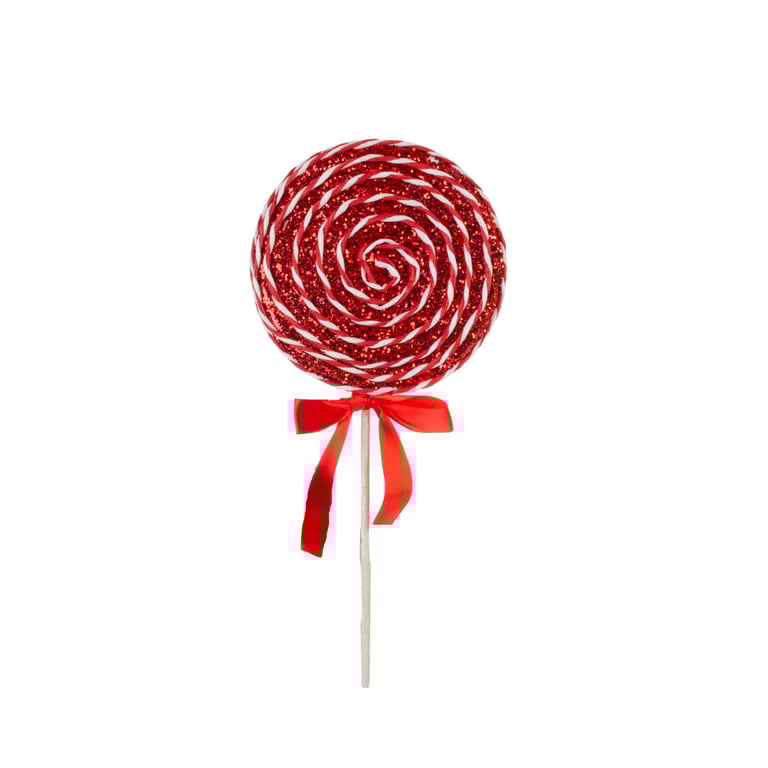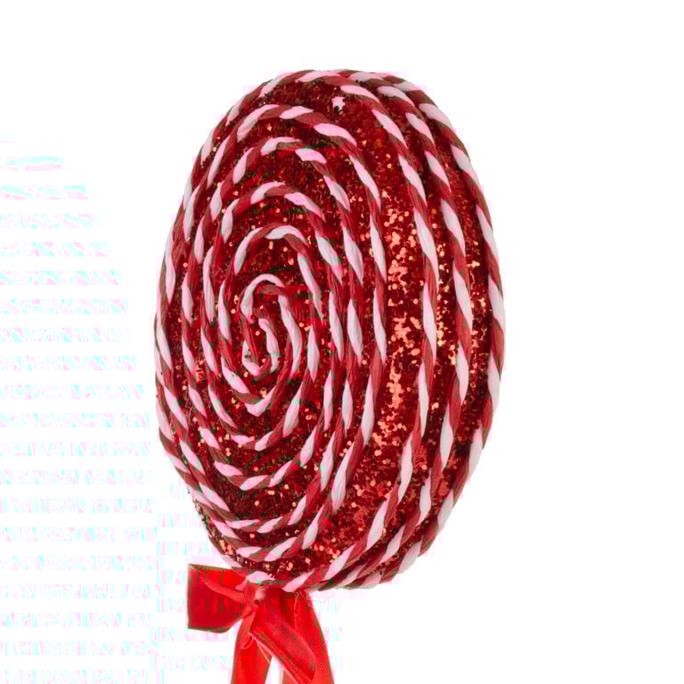 ENFEITE NATAL 30X14 CM PIRULITO COM GLITTER BRANCO COM VERMELHO