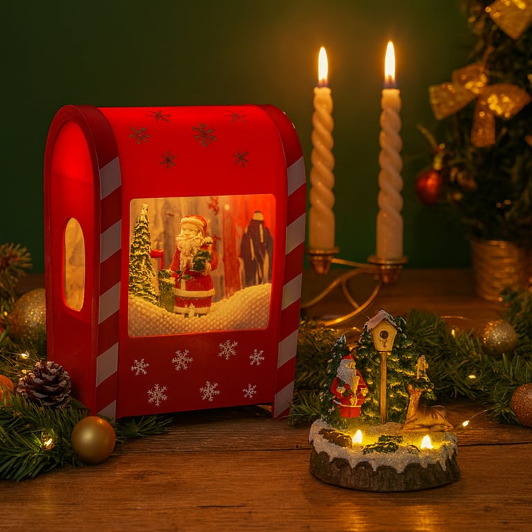 ENFEITE NATAL RESINA 10,5X9 CM CENÁRIO NATALINO COM LUZ DE LED