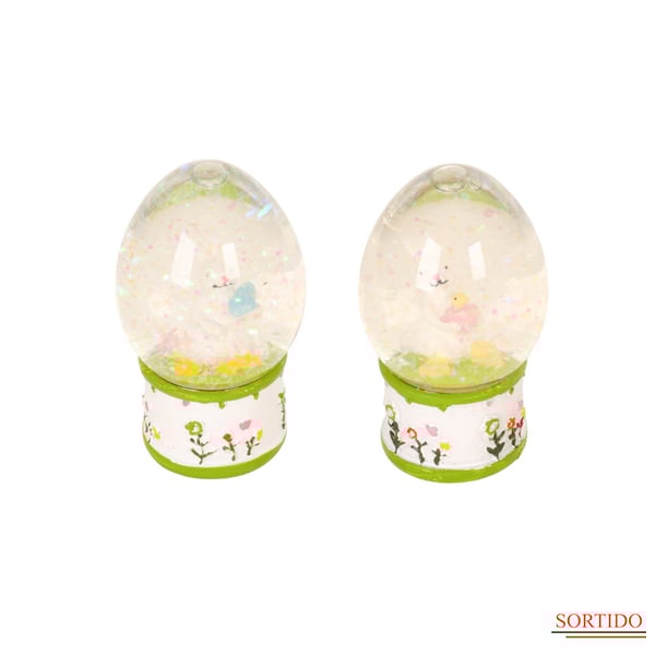 ENFEITE PÁSCOA 7,5X4 CM GLOBO DE NEVE OVO COM COELHO VIDRO