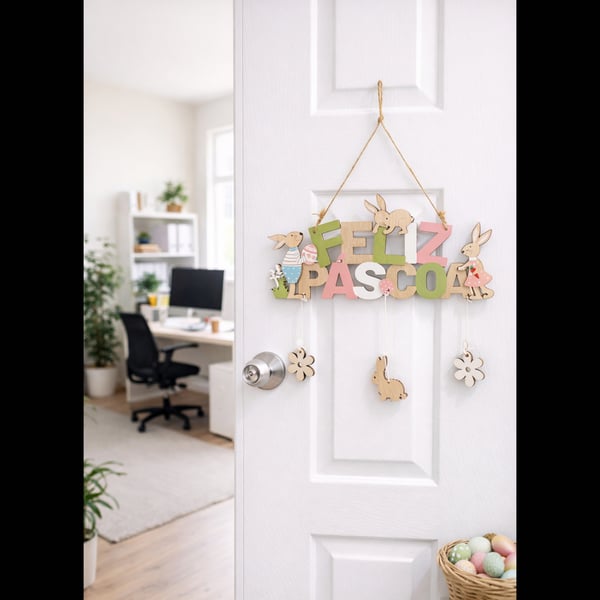 ENFEITE PORTA 30X28 CM FELIZ PÁSCOA COM PENDENTES