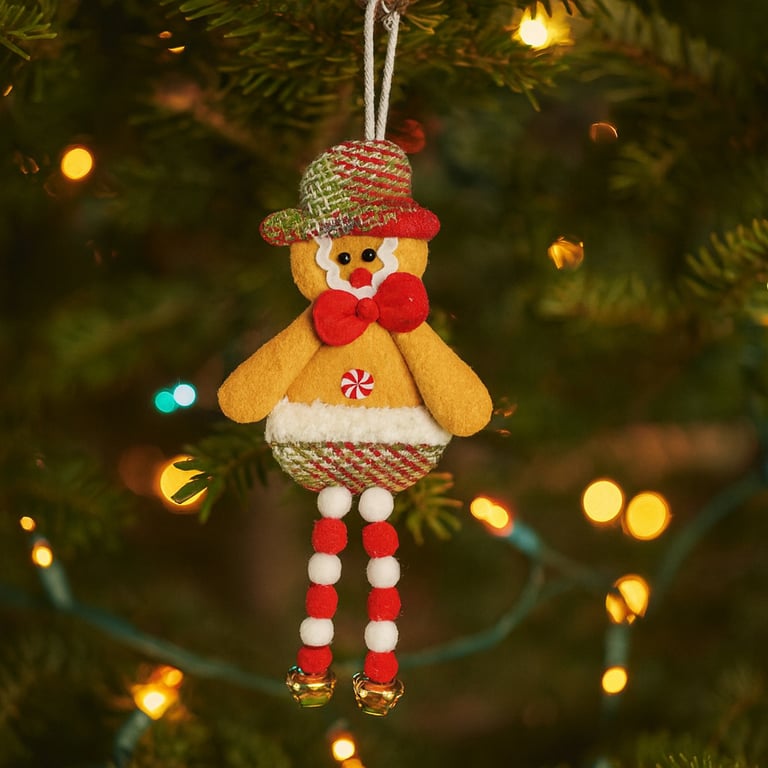 ENFEITE PORTA FELIZ NATAL 30X12 BONECO BISCOITO DE NATAL CHAPÉU TRICÔ