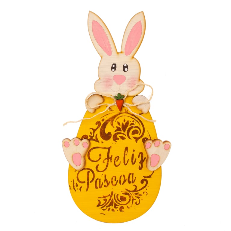 ENFEITE PORTA FELIZ PÁSCOA 32X15 CM MDF COELHO NO OVO