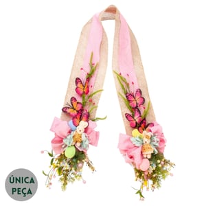 ENFEITE PORTA FELIZ PÁSCOA 41X27 CM OVO ROSA COM COELHO