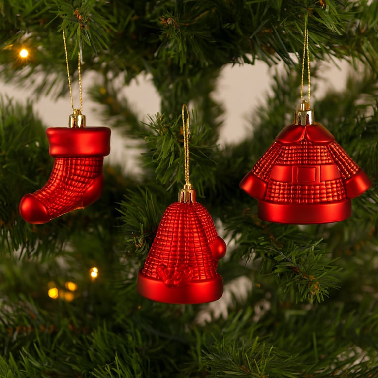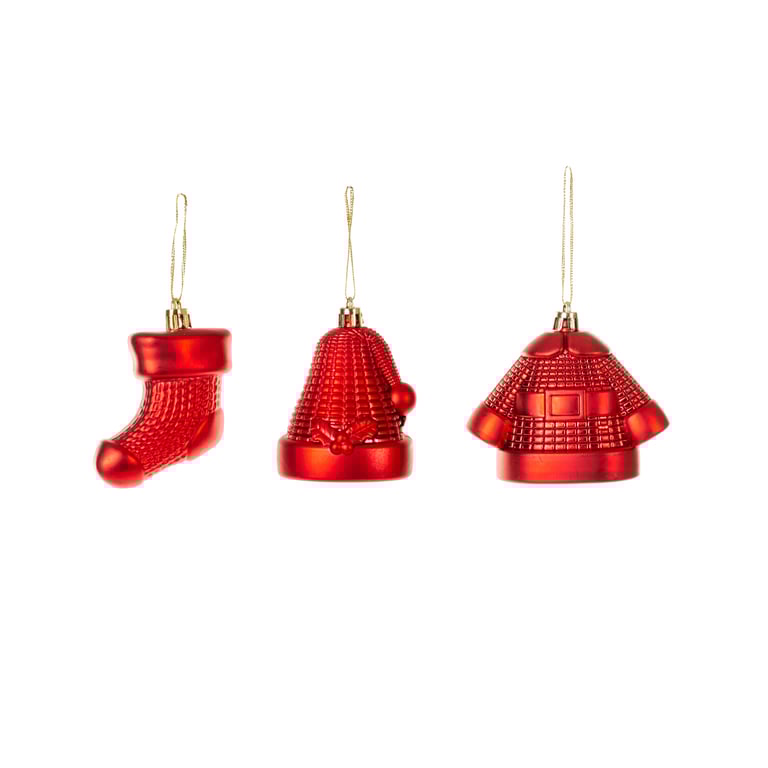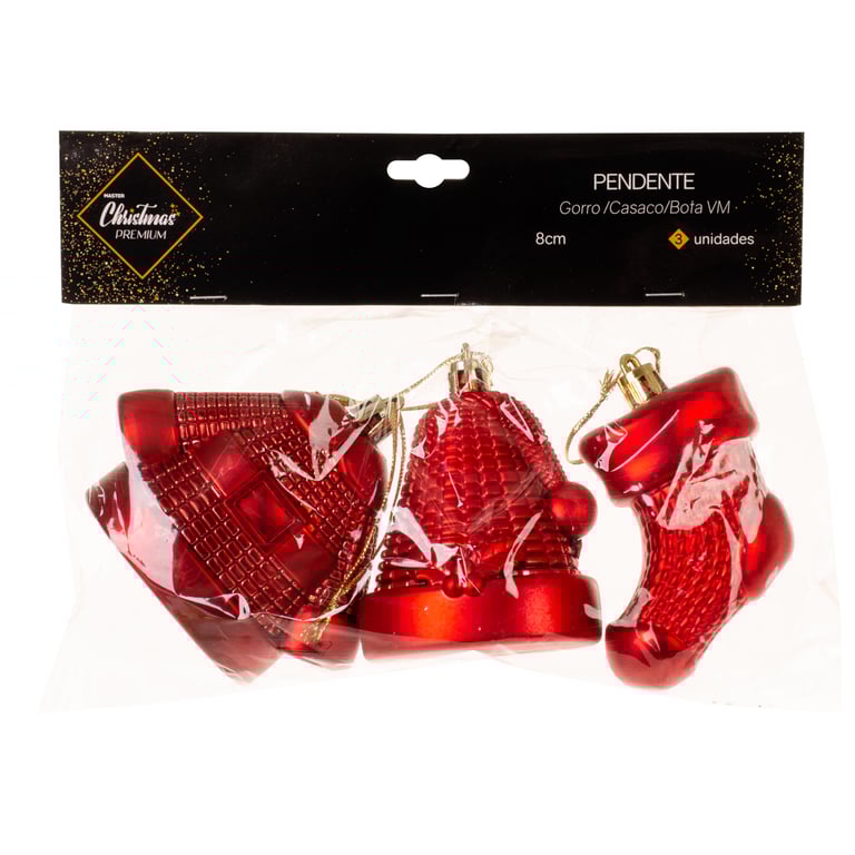 ENFEITES CASACO / TOUCA / BOTA PAPAI NOEL 8 CM 3 PEÇAS