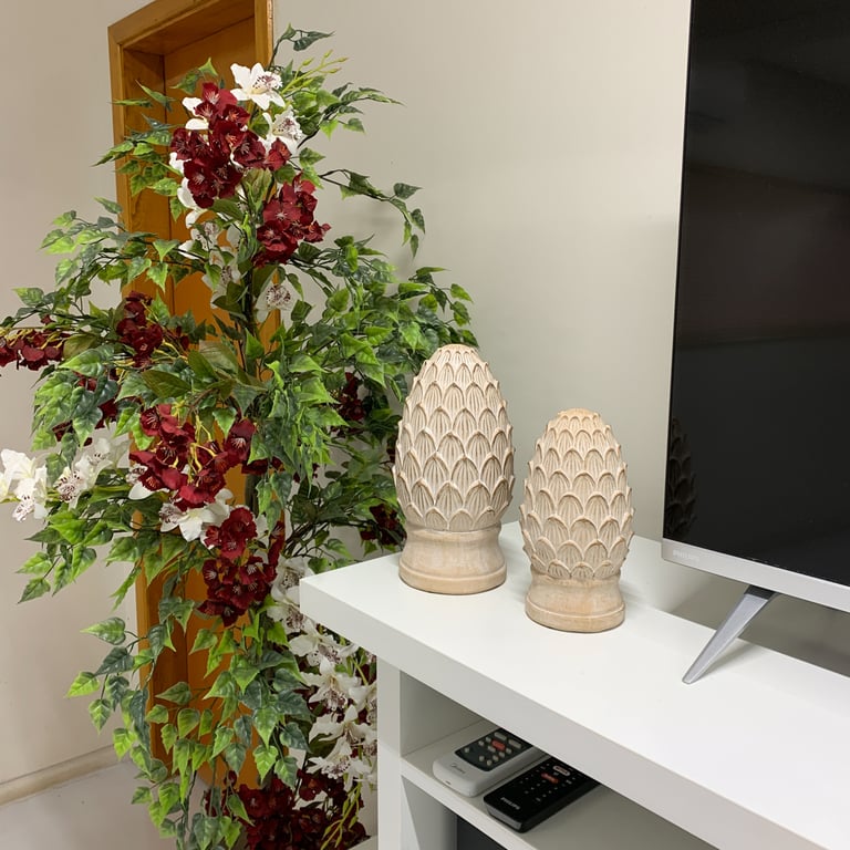 Sugestões de uso AS PINHAS DECORATIVAS PODEM SER USADSS SOZINHAS OU COM OUTROS OBJETOS PARA COMPOR DECORAÇÕES, SOBREPOSTAS EM BANDEJAS, EM GUIRLANDAS, ARRANJOS E EM VÁRIOS AMBIENTES DIFERENTES COMO: QUARTOS, SALAS, ESCRITÓRIOS, COZINHAS, HALLS DE ENTRADA, CONSULTÓRIOS, ENTRE OUTROS.