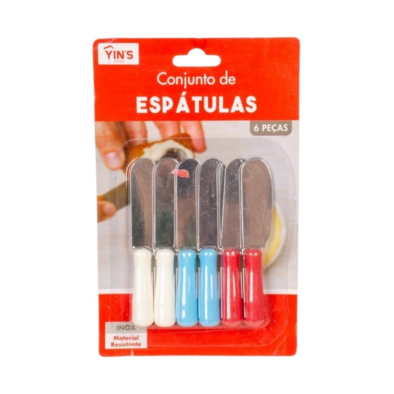 ESPÁTULAS INOX 6 PEÇAS 10X2 CM CABO COLORIDO
