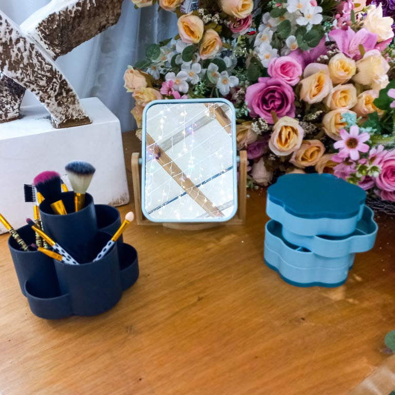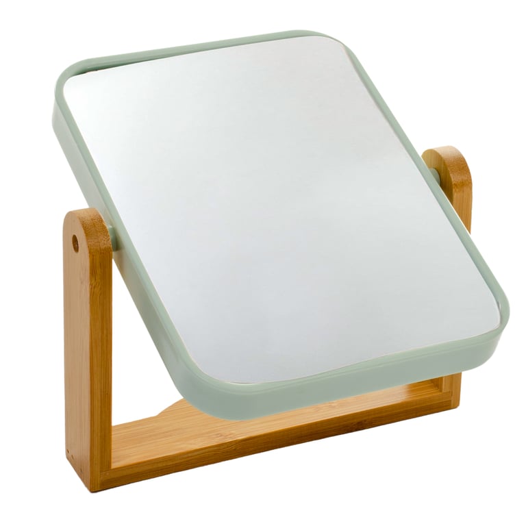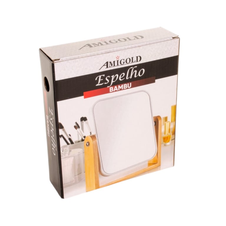 ESPELHO DE MESA 17X16 CM DUPLA FACE GIRATÓRIO COM APOIO