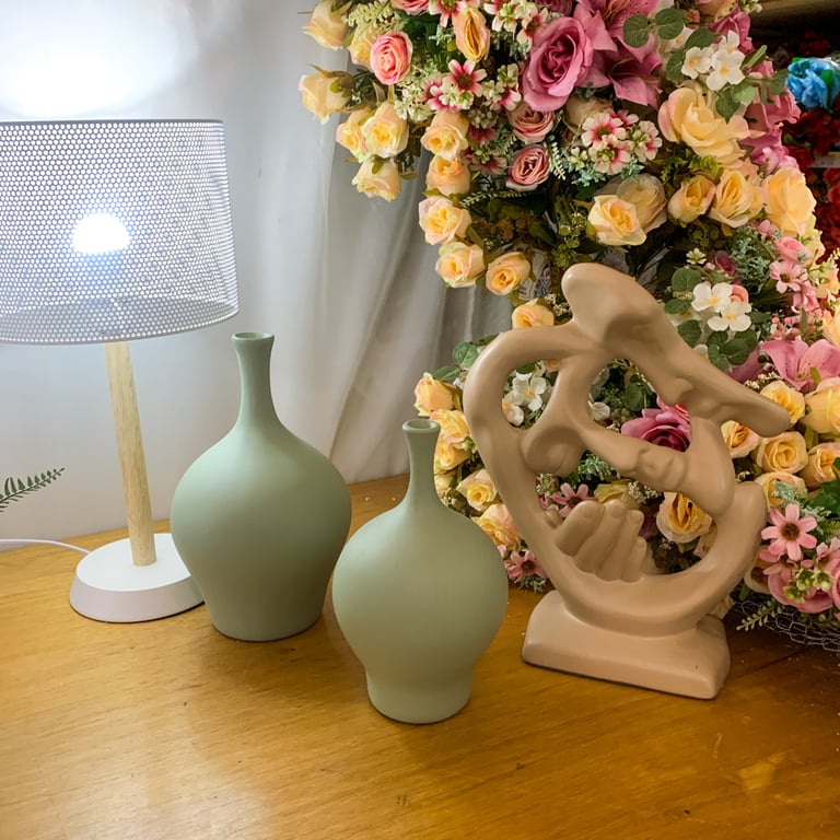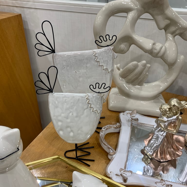 ESTATUETA FACES VAZADAS CERÂMICA 35X25X11 CM