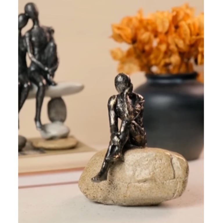 ESTATUETA PESSOA SENTADA NA PEDRA PENSANDO 15,5X11X15 CM RESINA
