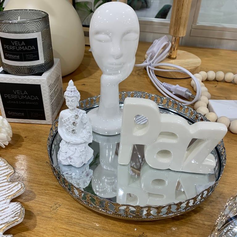 ESTATUETA ROSTO COM MÃO CERÂMICA 15X6 CM PENSATIVO