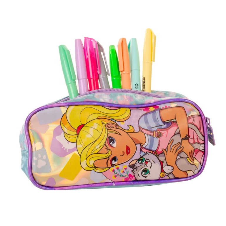 ESTOJO INFANTIL 10X4,5X20 CM 1 ZÍPER MENINA COM GATO