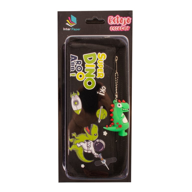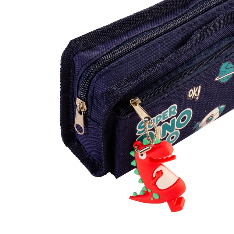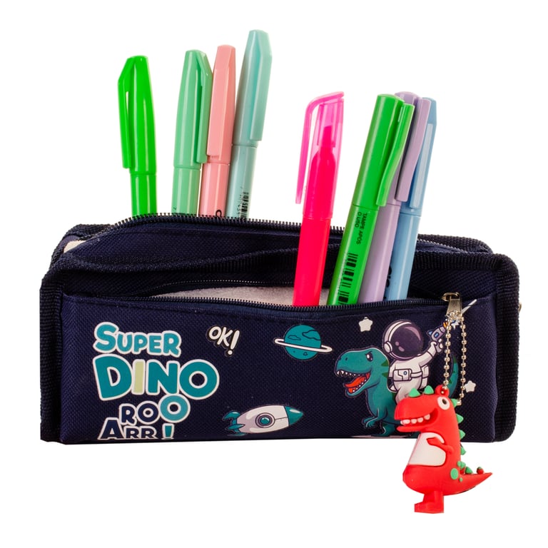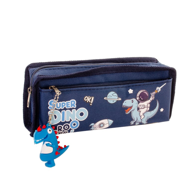 ESTOJO INFANTIL 8,5X21X6 CM 2 ZÍPER DINOSSAURO ASTRONAUTA COM CHAVEIRO