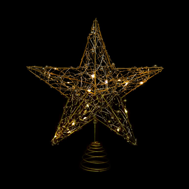 ESTRELA PONTEIRA 20 LEDS BRANCO QUENTE 30X25 CM À PILHA ARAMADA