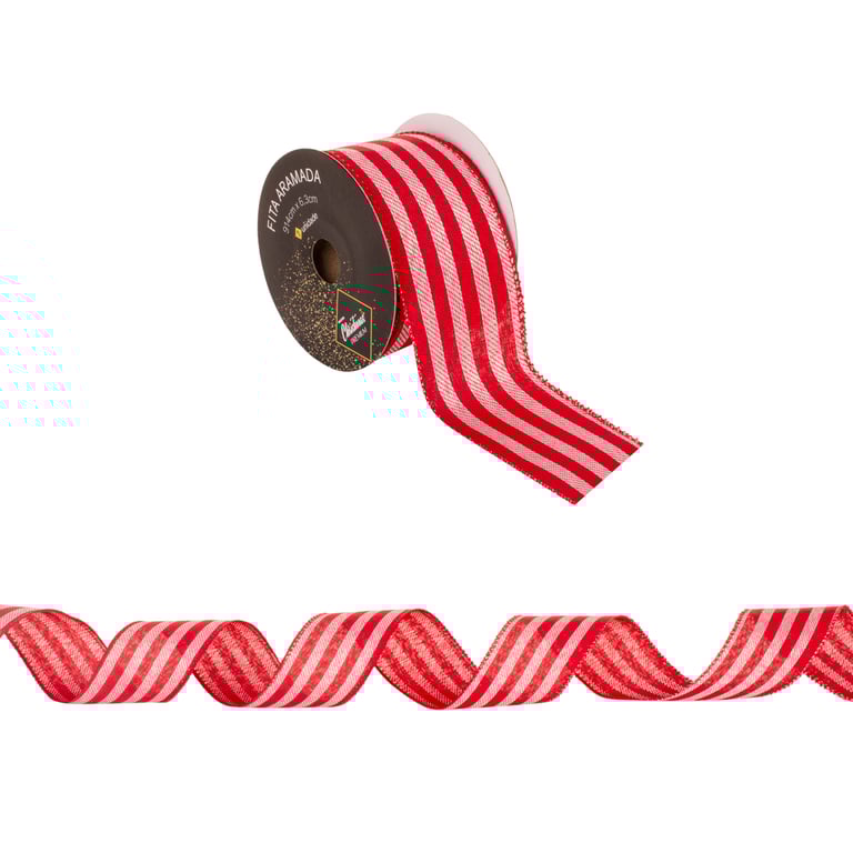FITA ARAMADA 6,3 CMX9,14 M VERMELHA LISTRAS BRANCAS